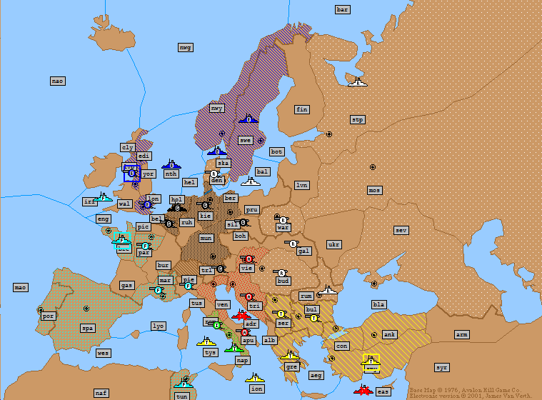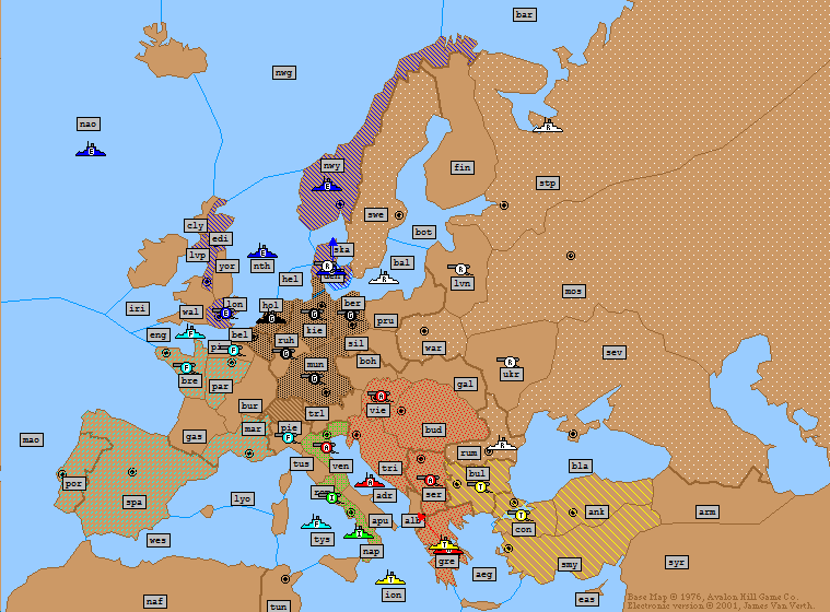 Russia: | Supp 10, Units 7 Build A Sevastopol Build A Moscow Build A Warsaw |